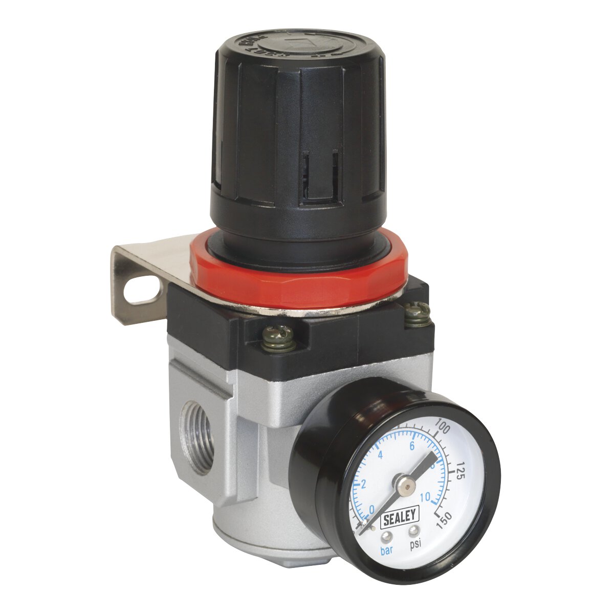 • Features locking control knob for presetting air pressure and pressure gauge.