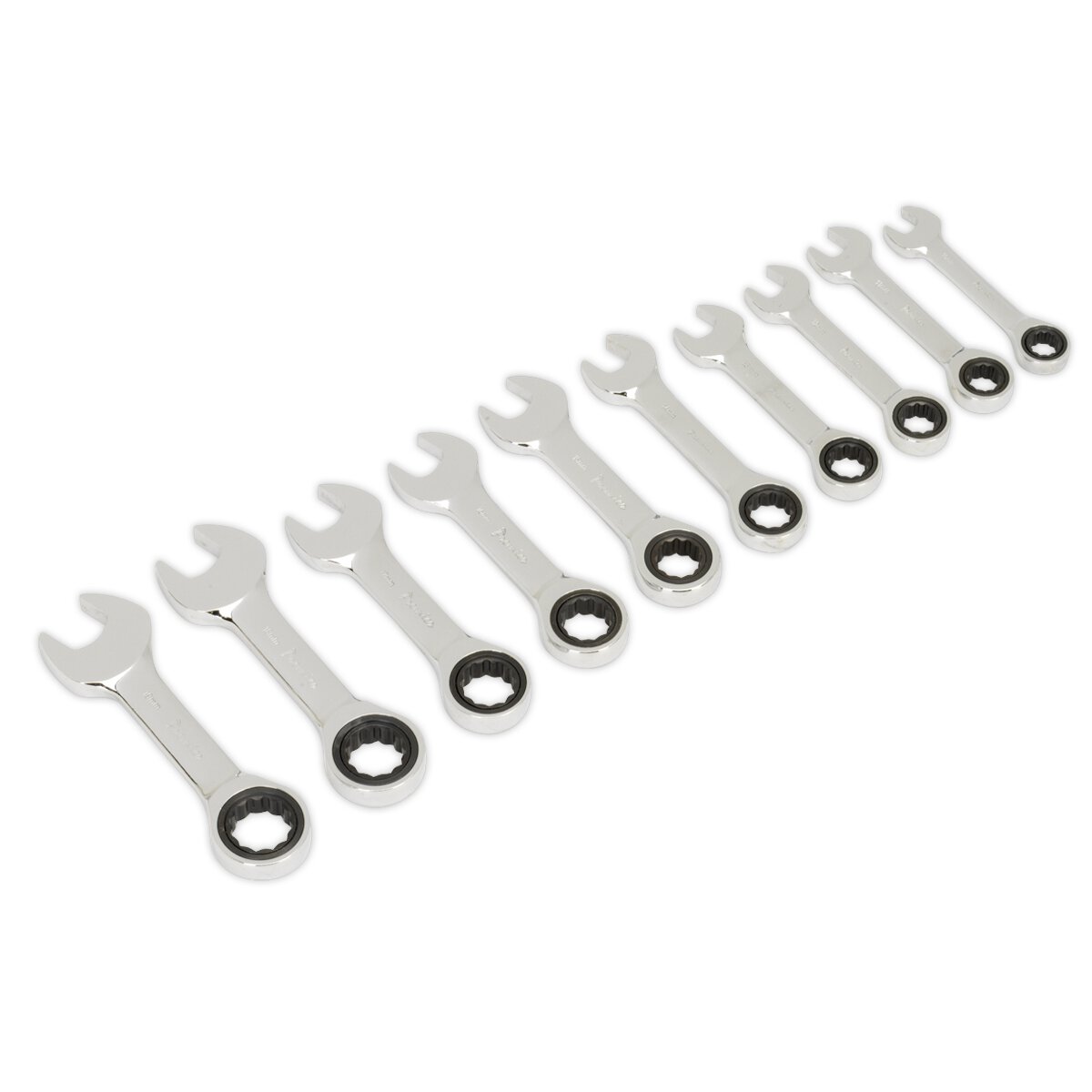 Combination Ratchet Spanner Set 10pc Stubby Metric