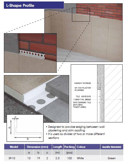 • Designed to provide edging between wall plastering and skim coating • It is used as divider of two or more different sections