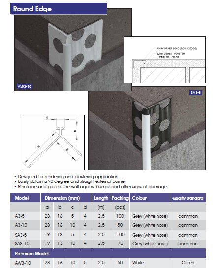 • Designed for rendering and plastering application • Easily obtain a 90 degree and straight external corner • Reinforce and protect the wall against bumps and other signs of damage