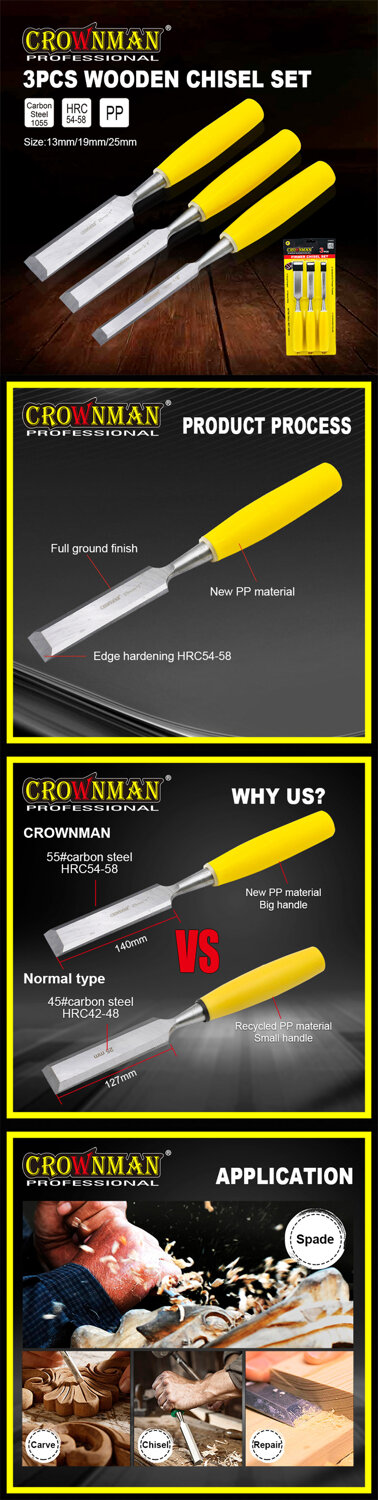 Crownman 3 Pieces Wooden Chisel Set