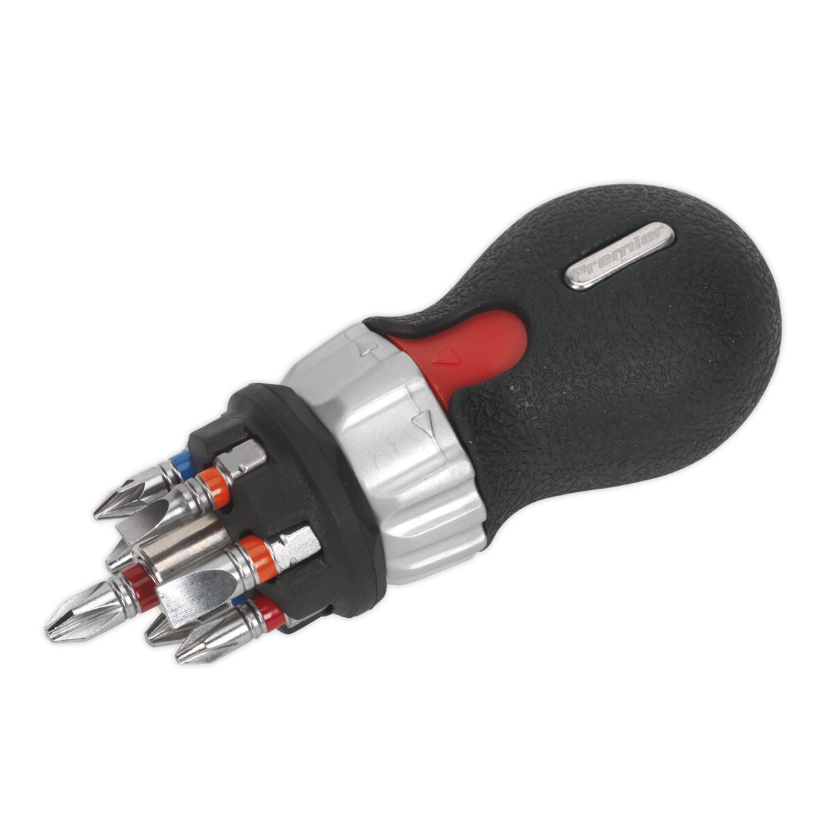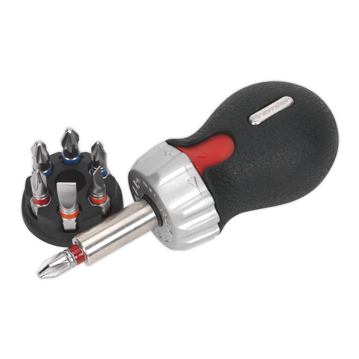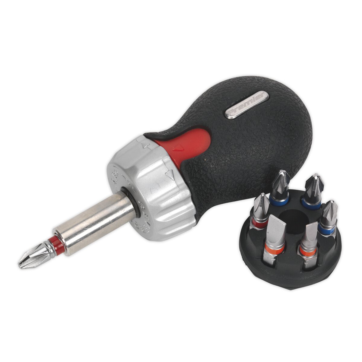Contents: 100mm Reversible Stubby Ratchet Driver, 25mm Bits; Slotted - 4, 6mm, Phillips - #1, #2, Pozi - #1, #2 (x2)