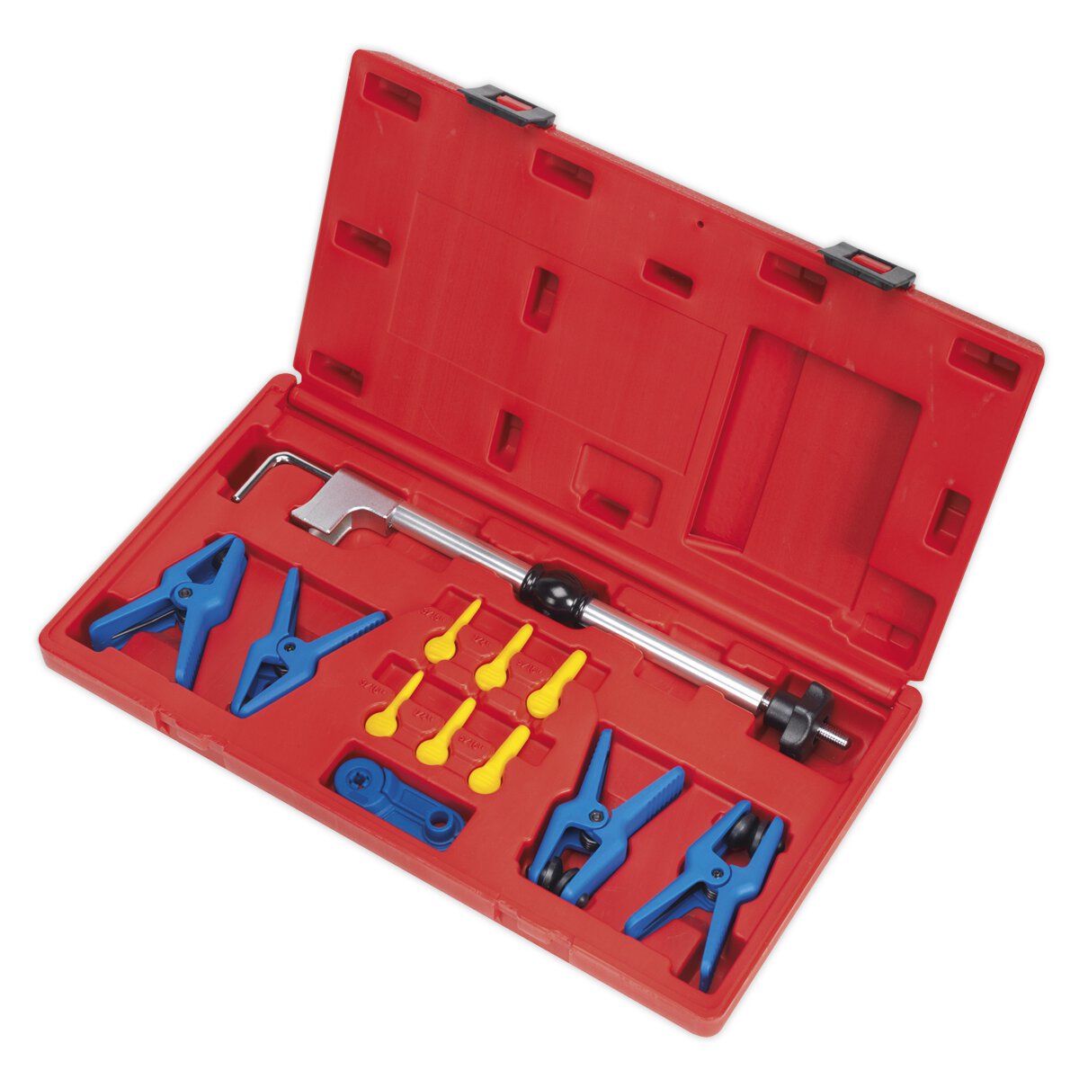 • Comprises long reach flexi-hose clamp, fuel pipe separator, six fuel hose plugs and four fuel supply adaptor clamps with rubber bungs, suitable for banjo and metal fuel pipes.