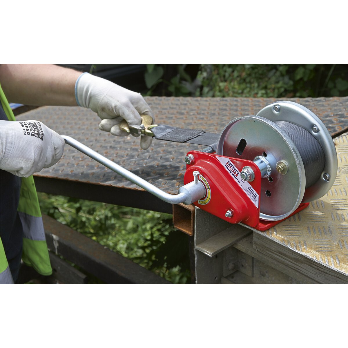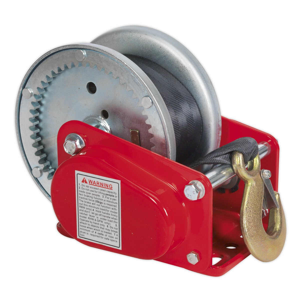 Geared Hand Winch with Brake & Webbing 900kg Capacity