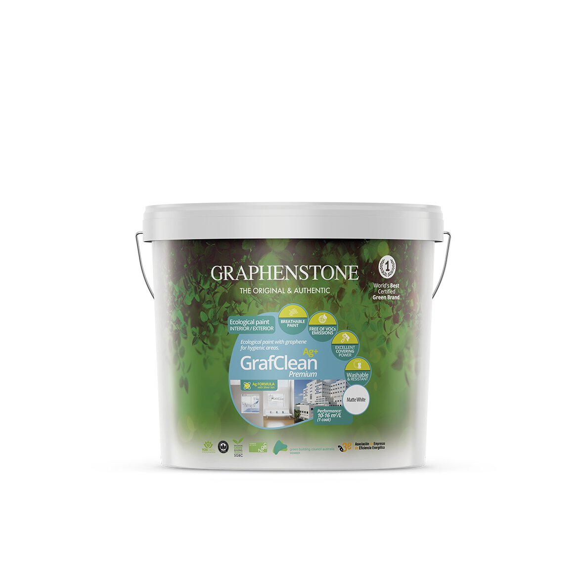 GrafClean Premium is an ecological paint with graphene technology and matt finish. Application in construction and repainting. Ideal for decorating facades and interiors. Free of VOC emissions, and certified.