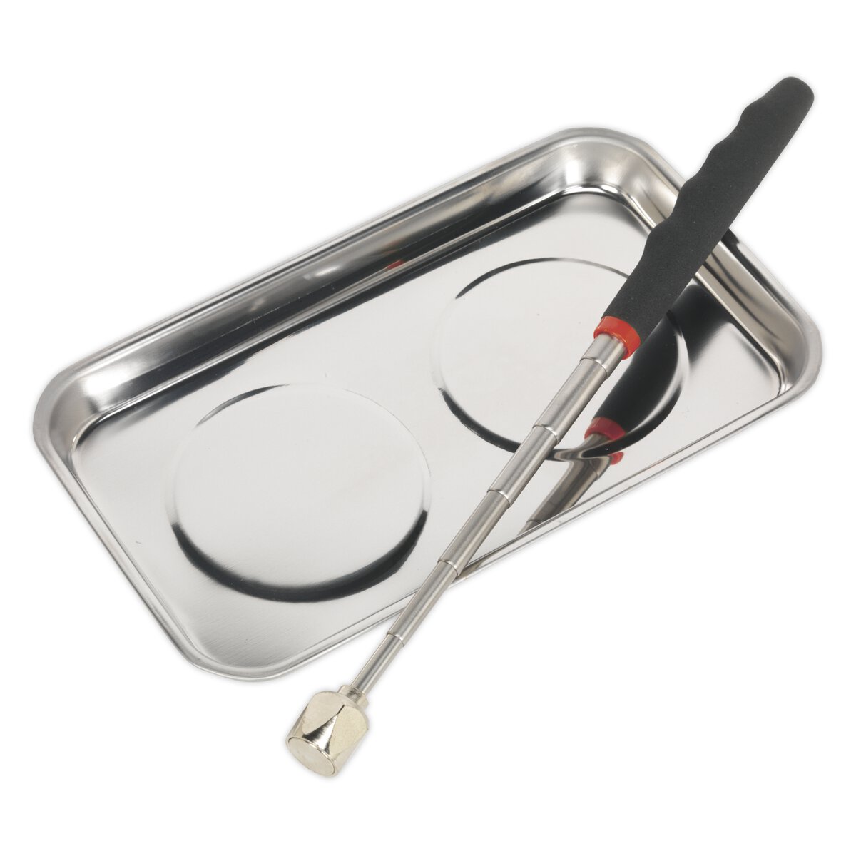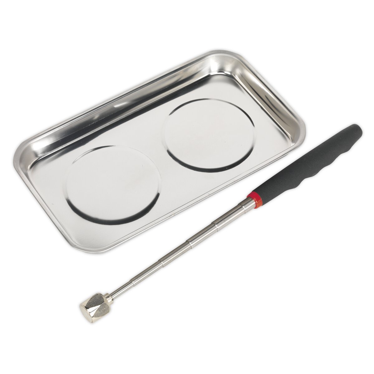 Contents: Magnetic Collector; Tray Size - 240 x 140mm, Number of Magnets - 2, Magnetic Pick-Up Tool; Minimum/Maximum Length - 185/770mm, Pick-Up Capacity - 7kg