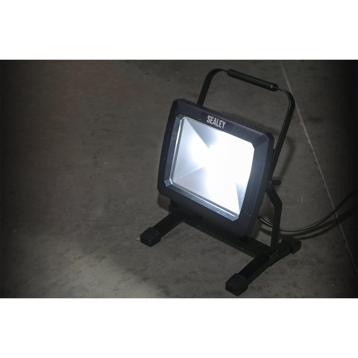 • Portable floodlight in die-cast aluminium housing with on/off switch and stand.