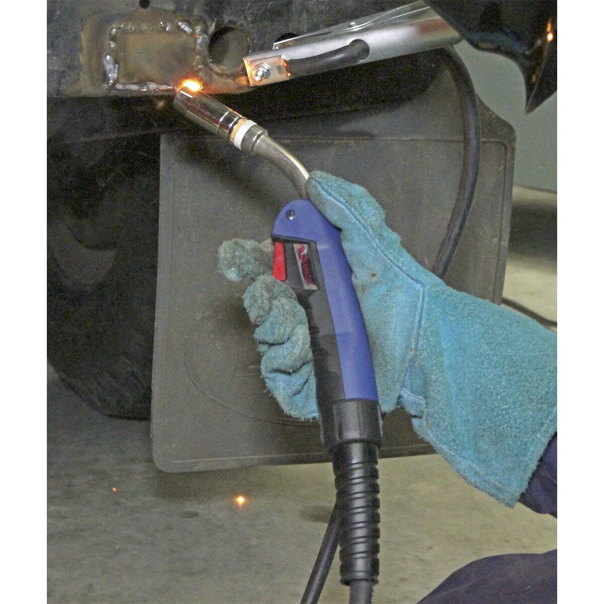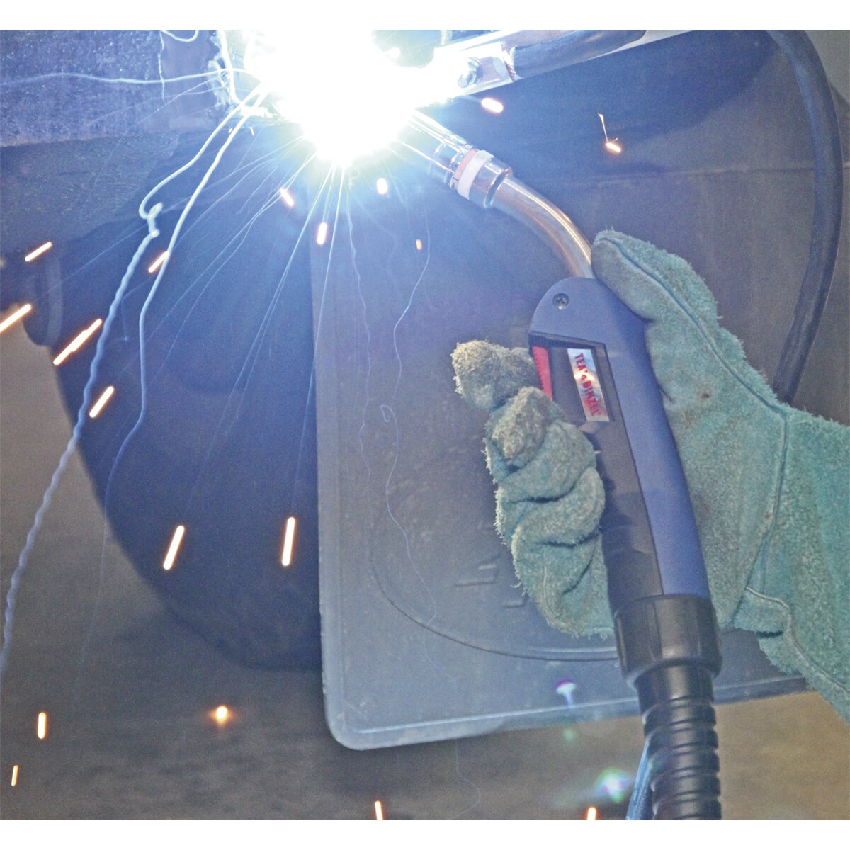 • Includes industrial twin gauge gas regulator, contact tip 0.8mm and gas cup.