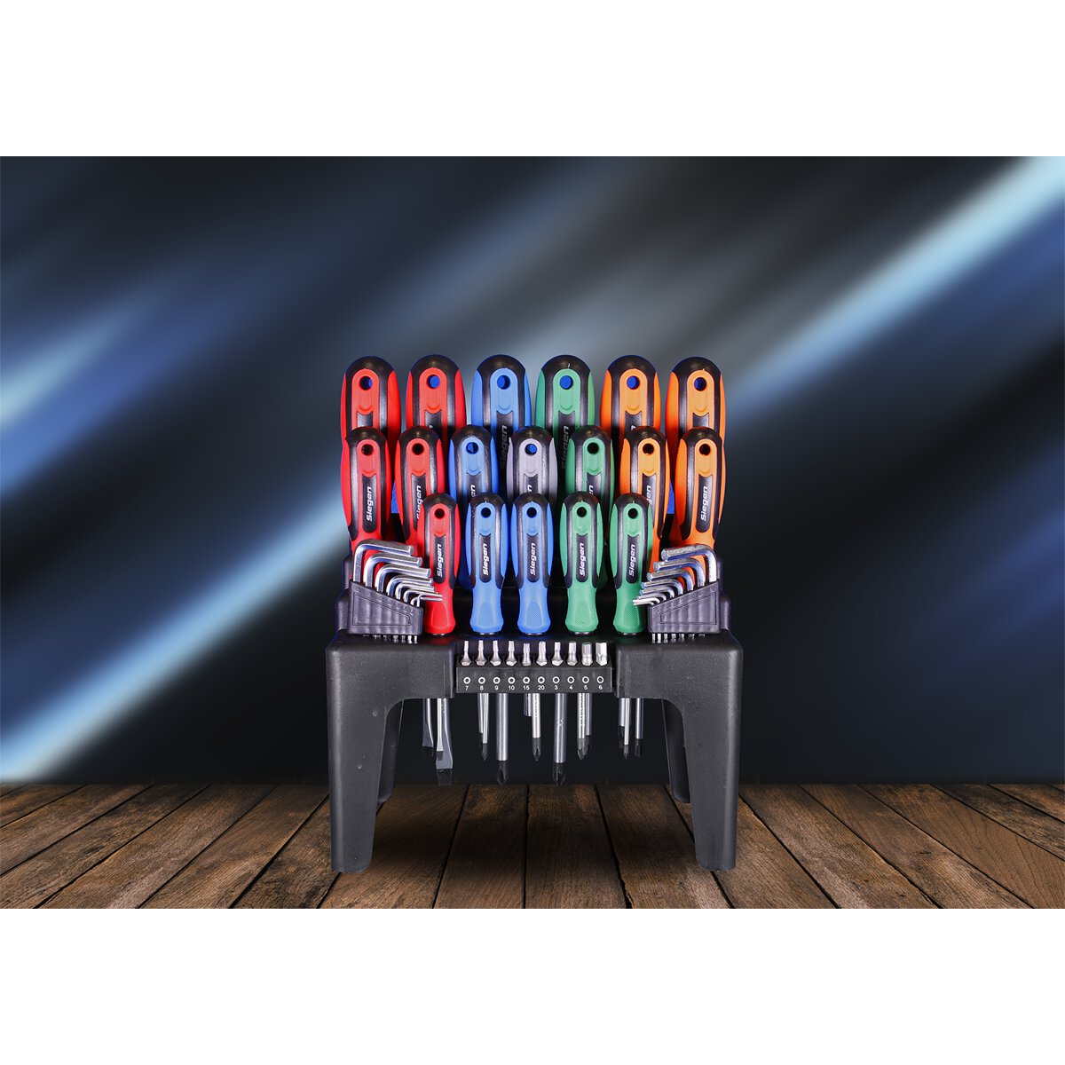 • Selection of popular sized screwdrivers, hex keys, bit driver and bits.