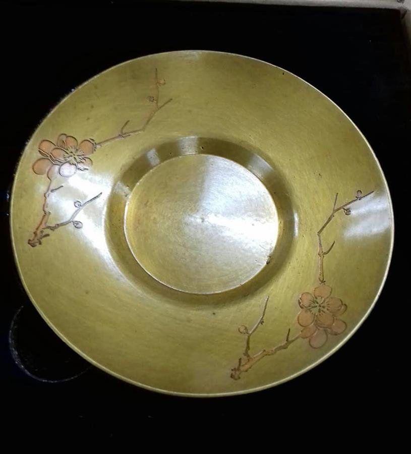 Small copper plate with floral design