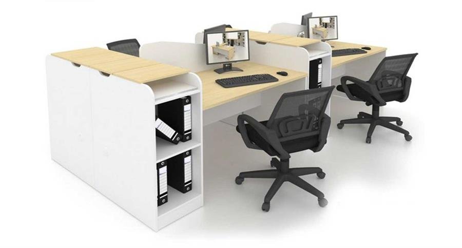 Workstation 4 Station Partition (White, Maple) with Maple Table Top, Low Height Partition [WS01] Office Furniture